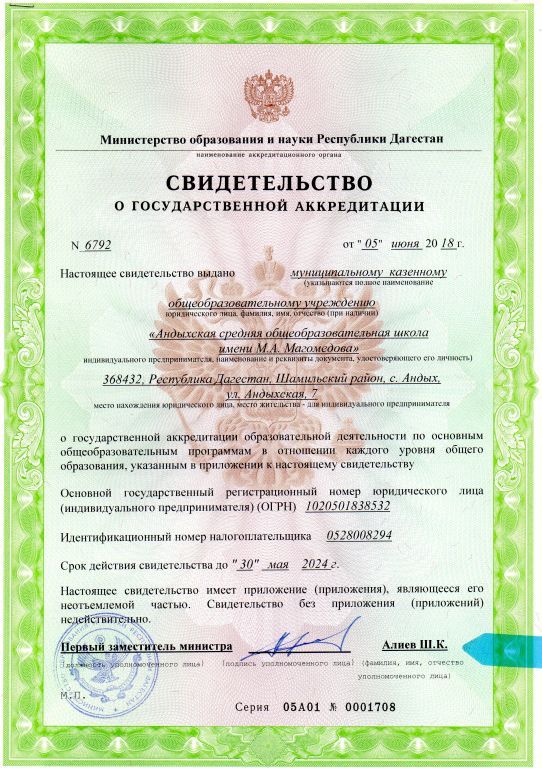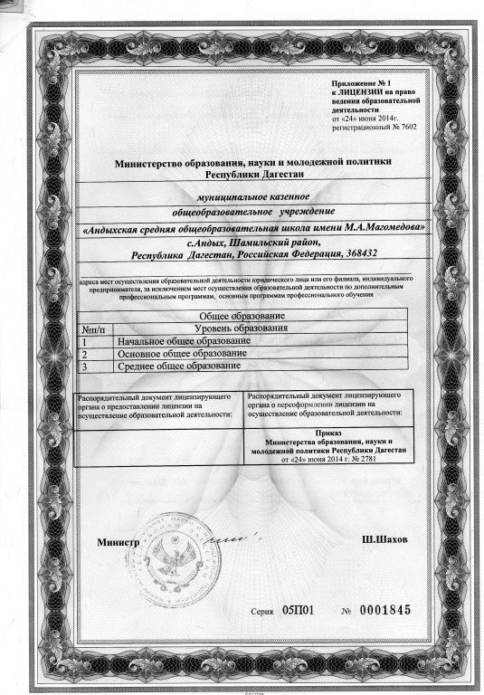 | Адрес местонахождения образовательной организации* | 368432 с.Андых, Шамильского р-на Республика Дагестан, |